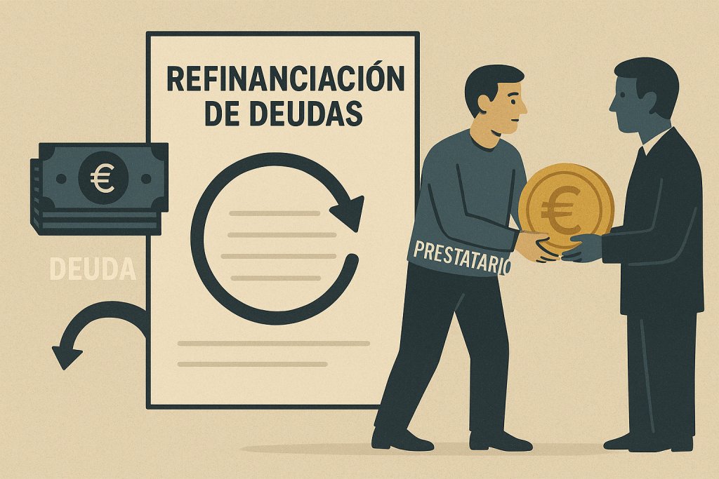Refinanciar consiste en sustituir una o varias deudas existentes por un nuevo préstamo con condiciones distintas. Normalmente se busca reducir la cuota mensual, obtener un tipo de interés más bajo o unificar varios pagos en uno solo.